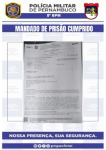 De acordo com as informações repassadas, o efetivo foi solicitado pelo agente de plantão para se deslocar até a Delegacia de Polícia Civil local, a fim de dar apoio a um mandado de prisão (nº 0000259-63.2025.8.17.3560.01.0001-11) que estava em andamento, em desfavor do indivíduo citado.