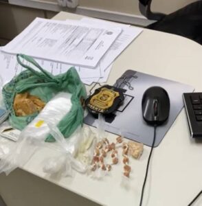 Na sequência, a equipe se deslocou até a residência de Gordo, mesmo após ele tentar se desfazer de objetos jogando-os pelo muro. Os policiais encontraram31,776 gramas de crack, também em pedra grande, e porções já prontas para venda. Dois usuários de drogas foram encontrados no interior do imóvel, confirmando o ponto de comercialização. Ambos foram autuados em flagrante delito pelo crime de tráfico de entorpecentes (artigo 33 da Lei 11.343/2006) e apresentados à autoridade policial.