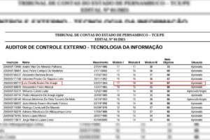 A pernambucana figura na lista de aprovados para o cargo de analista de controle externo do Tribunal de Contas de Pernambuco (TCE-PE), cujo resultado foi divulgado nesta terça-feira (6/10) pela Fundação Getulio Vargas (FGV).