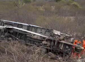 Caminhão capota e deixa três pessoas feridas na BR-428 em Santa Maria da Boa Vista