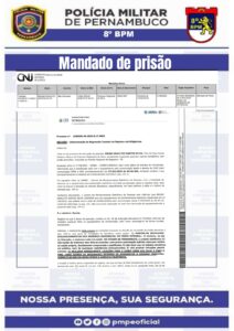 De acordo com informações da PM, durante a abordagem, foi constatado que havia um mandado de prisão criminal em desfavor do imputado. Diante da situação, ele foi detido e encaminhado à Delegacia de Polícia Civil local, onde foram adotadas as medidas cabíveis.