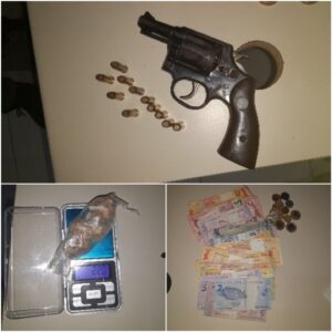 Em uma chácara pertencente ao mesmo homem, os policiais encontraram ainda um revólver calibre .38, 11 munições, uma balança de precisão e embalagens plásticas utilizadas para acondicionamento de drogas.