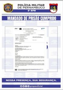 O mandado de prisão criminal de número 0000224-84.2025.8.17.7220.01.0002-19, expedido pela Comarca de Serrita, foi devidamente executado.