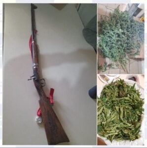 Durante as buscas no entorno da roça, os policiais ainda encontraram 690 gramas de maconha pronta para o consumo, além de uma espingarda do tipo antecarga de fabricação artesanal. Também foram apreendidos 680 gramas de chumbo, 159 gramas de pólvora e 36 espoletas, todos materiais utilizados para recarga de munições.